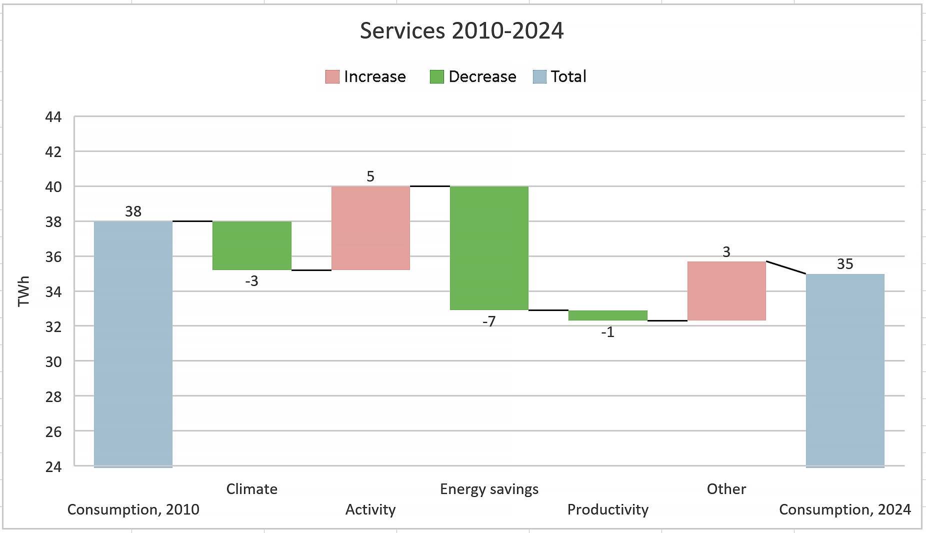 - Final energy consumption in services decreased by 3 TWh over the period.