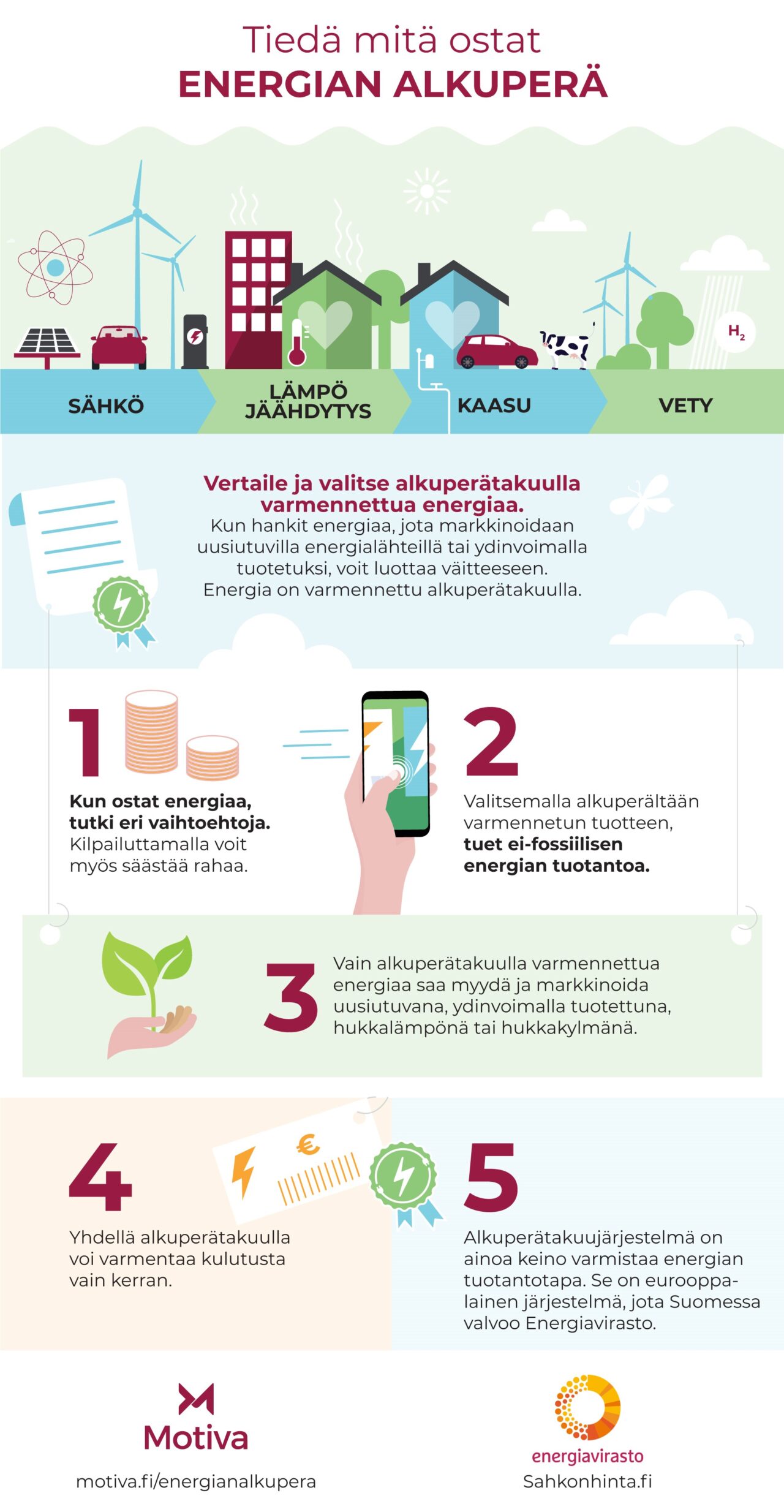 Lisätietoja Energiaviraston verkkosivuilta energian alkuperästä.